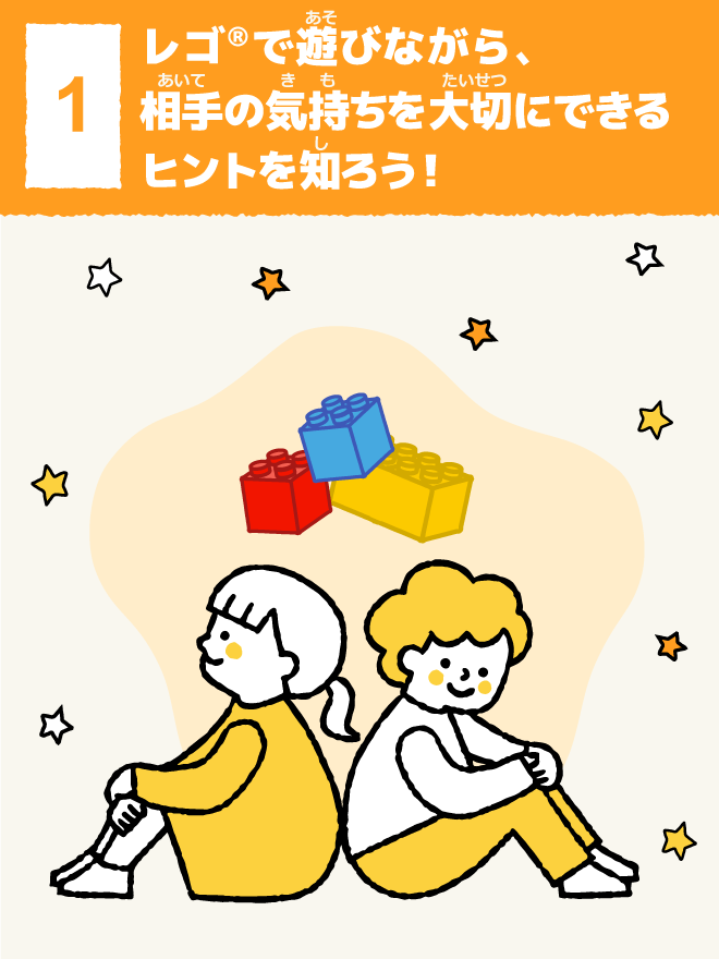 身近な困りごとの「見えている問題」と「行動の背景」を考え、ブロックを使って、相手の立場に立った解決方法を考えます。
